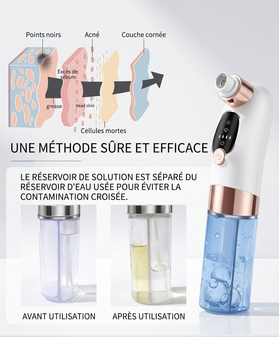 Je pensais que c’était seulement ma peau qui avait trop de points noirs, mais quand j’ai essayé cet appareil j’ai vu que ça sort vraiment et même mon petit frère était choqué quand je lui ai montré.